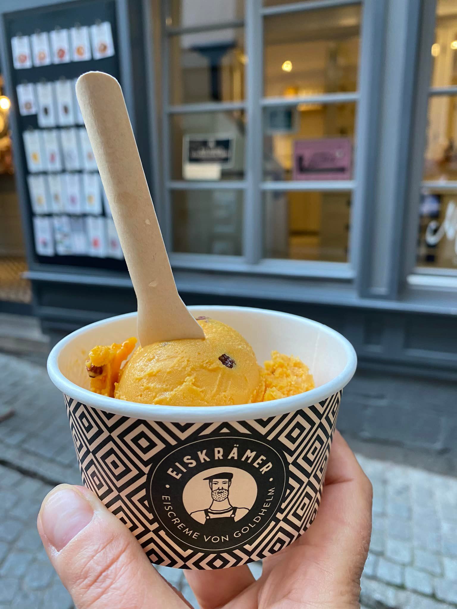 Auf der Krämerbrücke gibt es den Eiskrämer, logisch! Hier wird Rücksicht auf glutenfreie Bedürfnisse genommen. Manu hat es erlebt!