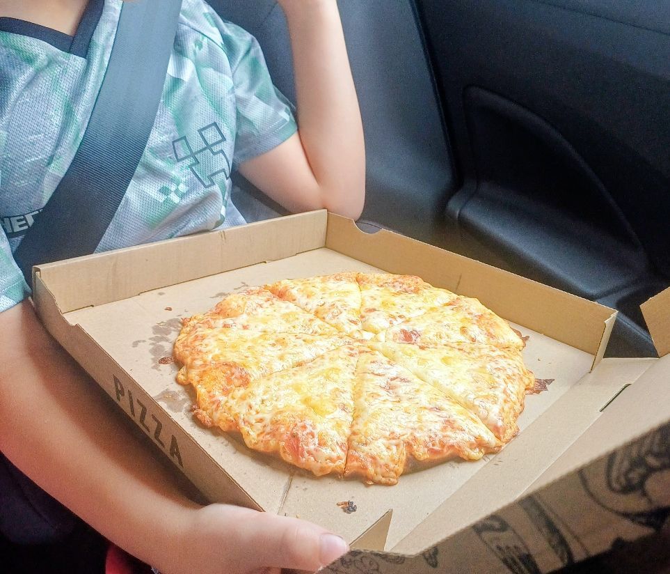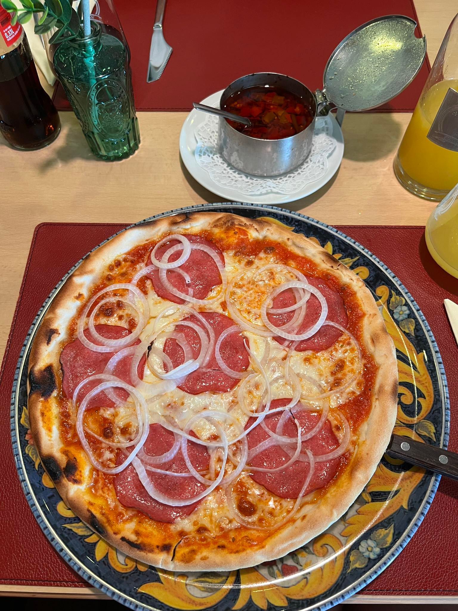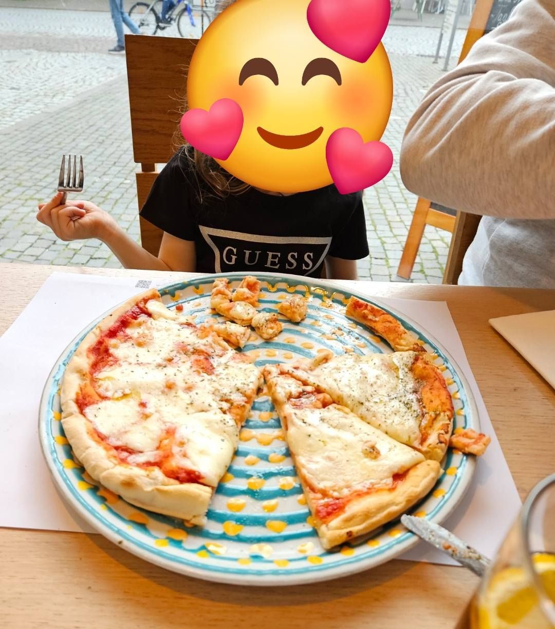 Bianca ist ganz begeistert von der Pizza, der Boden kommt extra aus Italien
